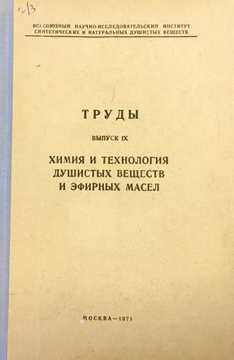 Химия и технология душистых веществ и эфирных масел. Труды: Выпуск IX. [Сборник статей]. Под ред. С. А. Войткевича, Л. А. Хейфица, Н. Ю. Любошиц. М.: тип. ВАХЗ, 1971. 219, [1] с.; 22, 5 см. Переплёт. Тираж 1000.