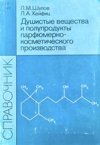 Шулов Леонид Маркович, Хейфиц Лев Абрамович. Душистые вещества и полупродукты парфюмерно-косметического производства. Справочник. М.: ВО Агропромиздат, 1990. 207, [1] с.; 20 см. Обложка. Тираж 3300. ISBN 5-10-001415-6